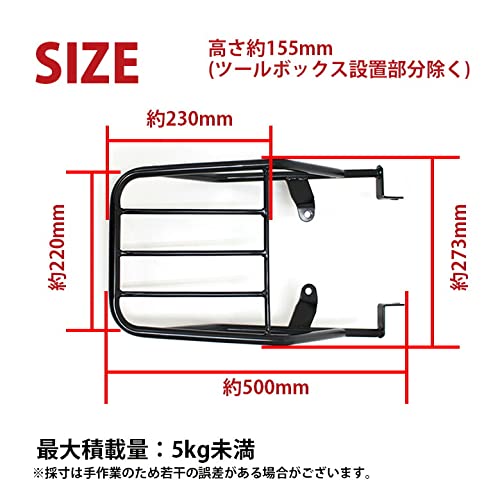 3.2mm鋼板を使用して曲げて作っているのでめちゃ頑丈です、持つと分かるけど重量もそこそこあります。なので結構な積載をしても大丈夫かなと思います。